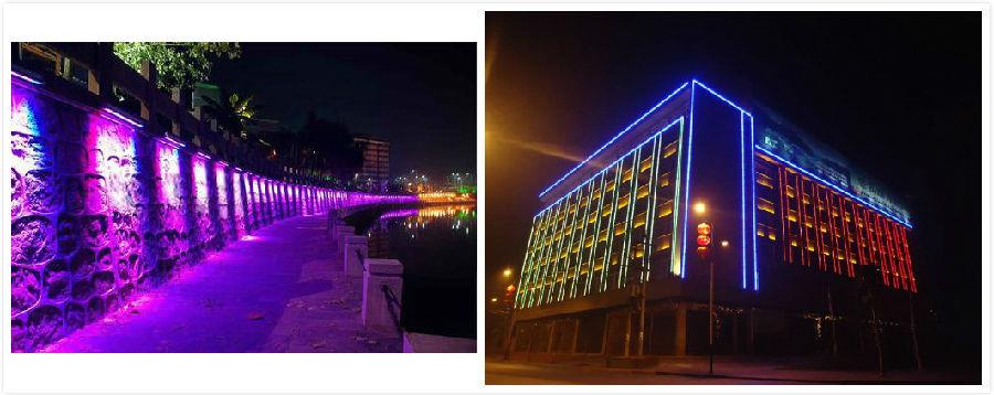 從百科上看,LED洗墻燈是讓燈光像水一樣洗過墻面。這里的效果就是LED洗墻燈把燈光打在墻面上,跟投光燈的應(yīng)用方式差不多,但效果更顯柔和。而LED線條燈則多數(shù)用來做建筑輪廓勾勒,或者做成數(shù)碼屏效果,當(dāng)然,也可能裝在墻角上讓燈光找到墻上,但LED洗墻燈更靈活。